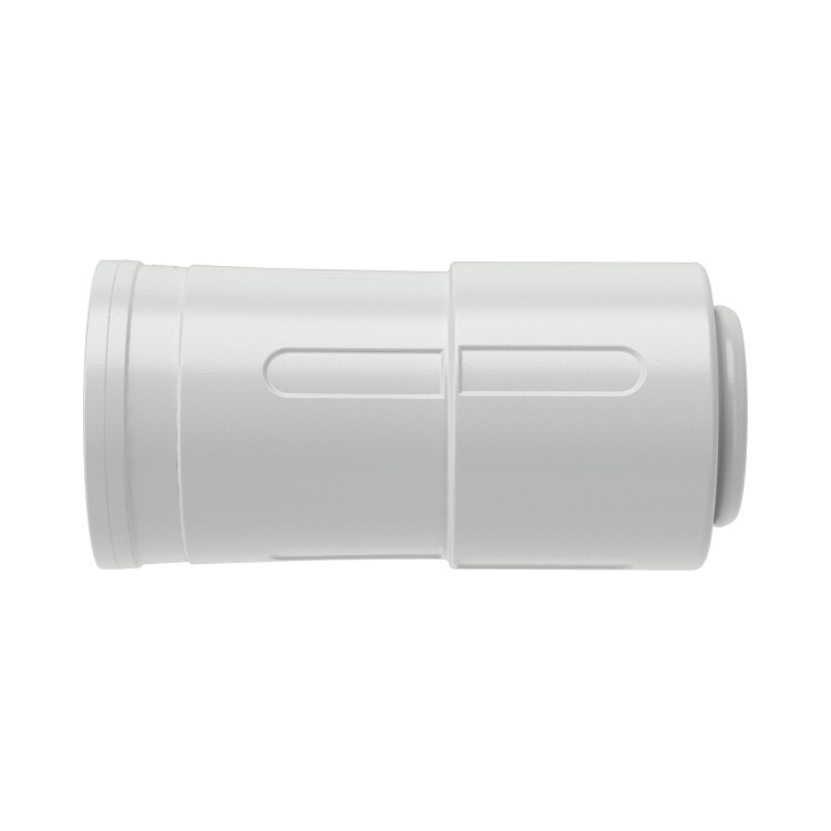 Переходник "Армированная труба - жесткая труба" для герметичного соединения жестких гладких и армированных труб. Диаметр - 25 мм. Материал: полипропилен/ резина. Степень пыле- и влагозащиты IP67. Цвет серый RAL 7035. Элемент системы может эксплуатироваться при широком диапазоне температур: от –25°С до +60 °С.