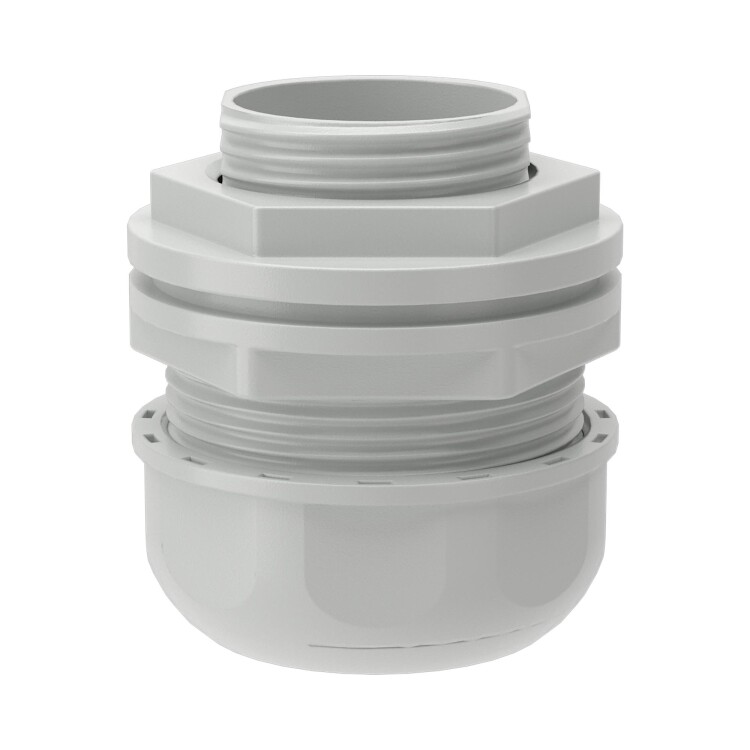 Переходник "Армированная труба - коробка" для герметичного соединения гибких армированных труб с ответвительными коробками, корпусами шкафов и боксов. Диаметр - 25 мм. Материал: полипропилен. Степень пыле- и влагозащиты IP65. Цвет серый RAL 7035. Элемент системы может эксплуатироваться при широком диапазоне температур: от –25°С до +60 °С.