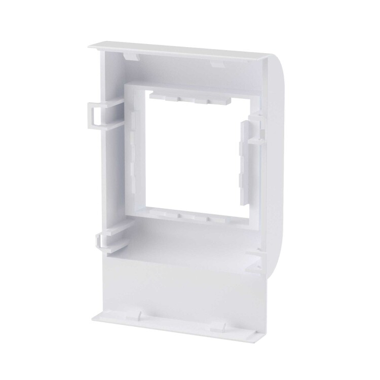 короба, тип TA-GN серии "In-liner Classic". Монтаж: монтаж суппорта внутри короба с помощью защелкивания, монтаж электроустановочных изделий в рамку − защелкиванием изнутри. Характеристики: материал – АБС-пластик и поликарбонат. Комплектация: рамка; суппорт. Типоразмер короба: 100х40, 100х60, 100х80. Кол-во модулей: 2. Цвет: белый
