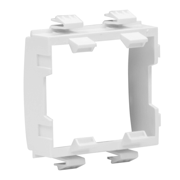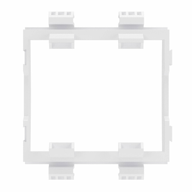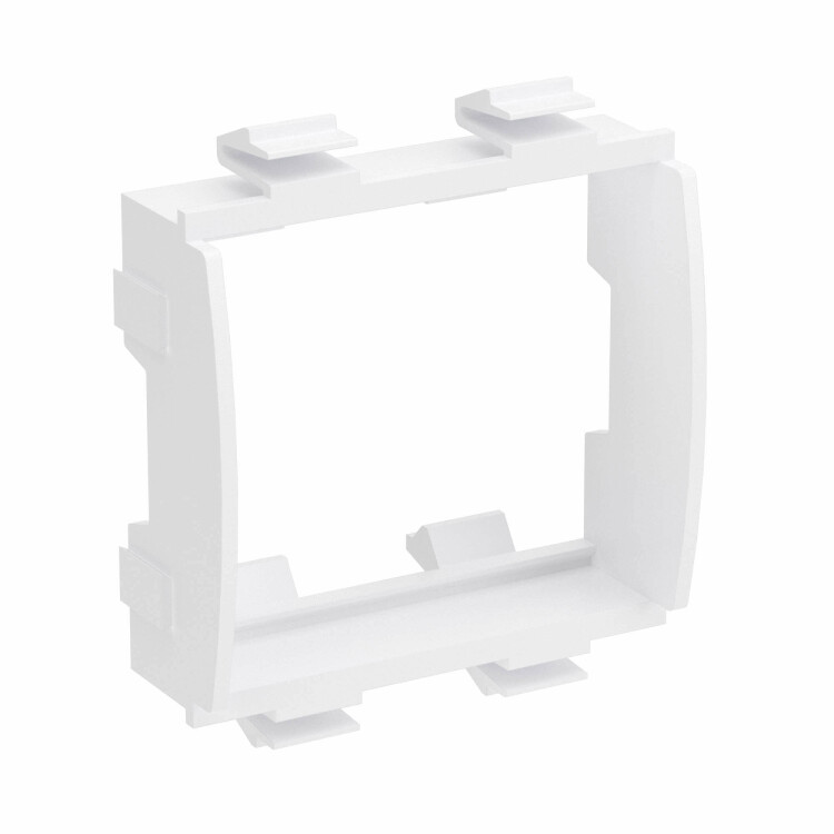 Каркас на 2 модуля для монтажа ЭУИ серии ЭУИ «Вива» (Viva). Назначение: монтаж ЭУИ в пластико вые короба «In-liner Front», алюминиевые короба и колонны «Aero», напольные лючки и башенки BUS. Характеристики: материал — АБС-пластик; с двух внешних сторон расположены замки, предназначенные для соединения одинаковых каркасов в ряд и для использования под одной сплошной рамкой. Каркасы для разных серий ЭУИ между собой не соединяются, но монтируются в ряд под одной рамкой. Цвет: Белый