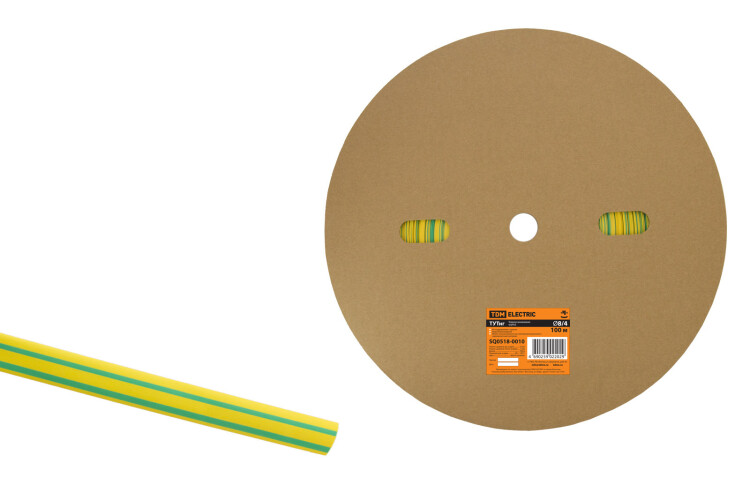 Термоусаживаемая трубка ТУТнг 8/4 желто-зеленая (100 м/ролл) TDM (кр.100м)