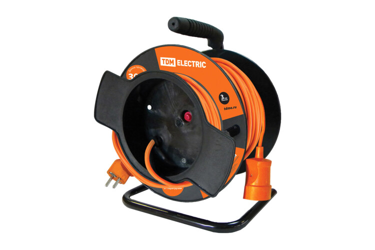 Удлинитель силовой УК10-001 TDM (штепс. гнездо/30м ПВС 2х0,75) (кр.1шт) нМ