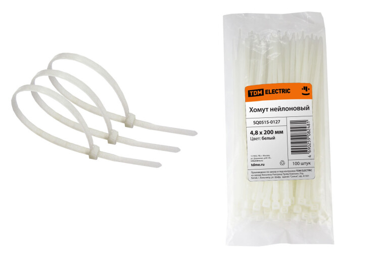 Хомут 4,8х200мм нейлон (белый) (100шт) TDM (кр.10упак)