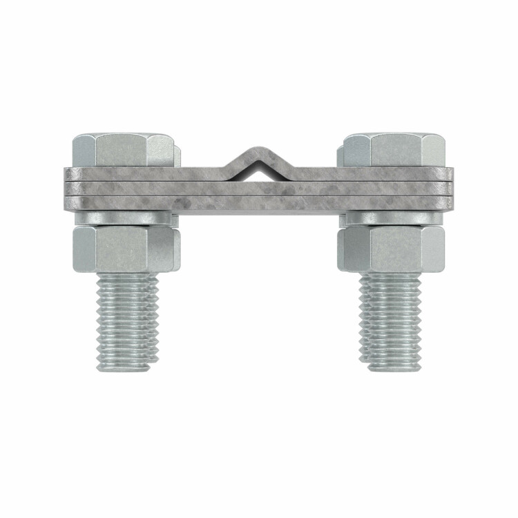 Соединитель "пруток - полоса" с разделительной пластиной используется для параллельного либо крестового соединения прутка 8-10 мм с полосой 25 мм. Материал - горячеоцинкованная сталь.