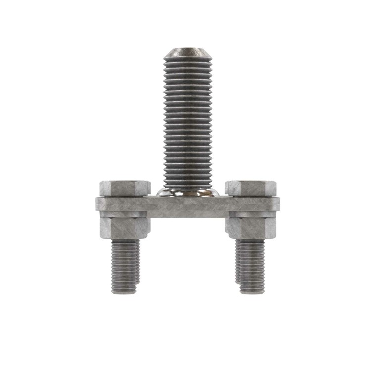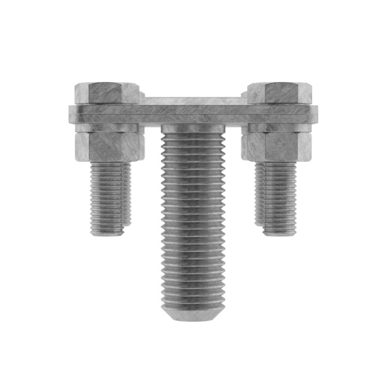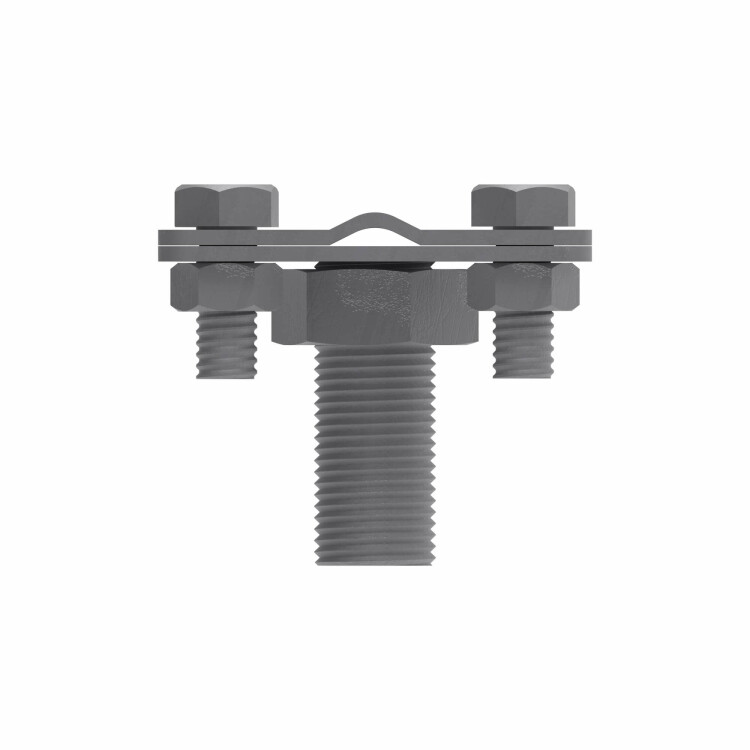 Соединитель применяется для подключения круглого (8-10 мм) либо плоского (25 мм) проводника к молнеприемному стержню. Соединитель устанавливается в бетонное основание путем ввинчивания. Диаметр резьбы - 16 мм. Материал - горячеоцинкованная сталь.