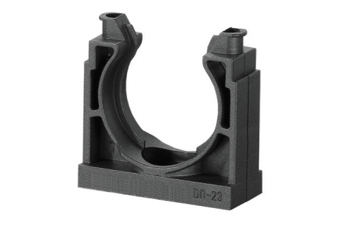 Держатель из полиамида фиксируется на поверхностях стен, потолков и т.п. и используется для крепления полиамидных труб. Внутренний диаметр держателя - 29 мм. Для более надежной фиксации желательно дополнительно использовать хомуты. Материал – полиамид (PA6.6). Цвет - черный. Температура эксплуатации – от –45 до +105 °С (выдерживает кратковременное воздействие до +150 °С). Не содержит галогенов.
