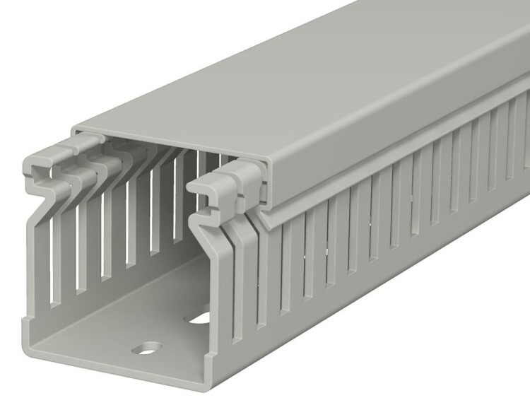 Короб перфорированный серии LK4 размером 40x40 мм. Перфорация (вырезы) на стенках короба шириной 4 мм. Стенка короба (борт вместе с крышкой) шириной 43 мм. Крышка короба шириной 46 мм. Материал: ПВХ (поливинилхлорид). Цвет: серый RAL 7030. Распределительный короб с крышкой и перфорированным основанием. Номинальный размер системного отверстия соответствует внутреннему размеру короба.