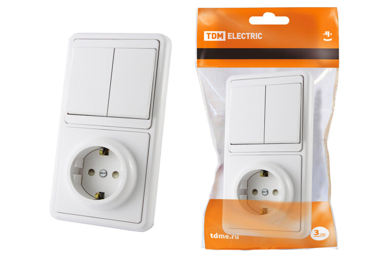 Блок комбинированный БКВР 2-х кл. выкл + розетка 2П+З с з/ш TDM (кр.10шт)