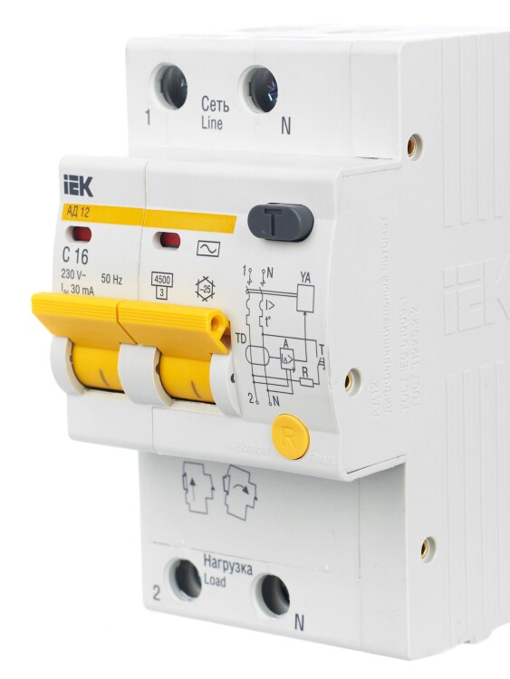 Диф. автомат АД12 2Р 16А 30мА IEK (кр.1шт)