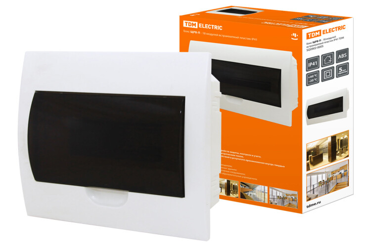 Бокс ЩРВ-П-18модулей встраиваемый пластик IP41 TDM (кр.1шт)