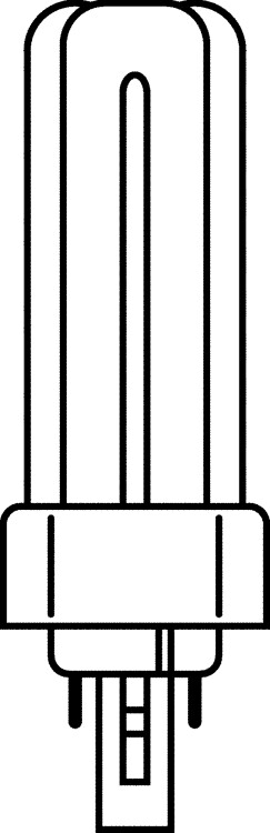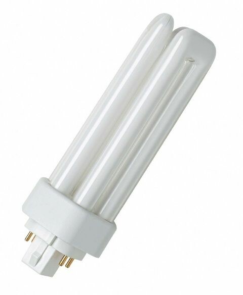 Компактная люминесцентная лампа неинтегрированная OSRAM DULUX T PLUS 26Вт с штырьковым одиночным четырехконтактным цоколем GX24d и трехоборотной колбой.Лицензиатом торговой марки OSRAM в общем освещении является компания LEDVANCE.