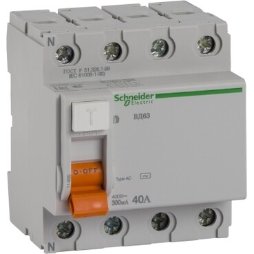 ДИФ. ВЫКЛ. НАГРУЗКИ ВД63 4П 40A 300MA АС, Испания