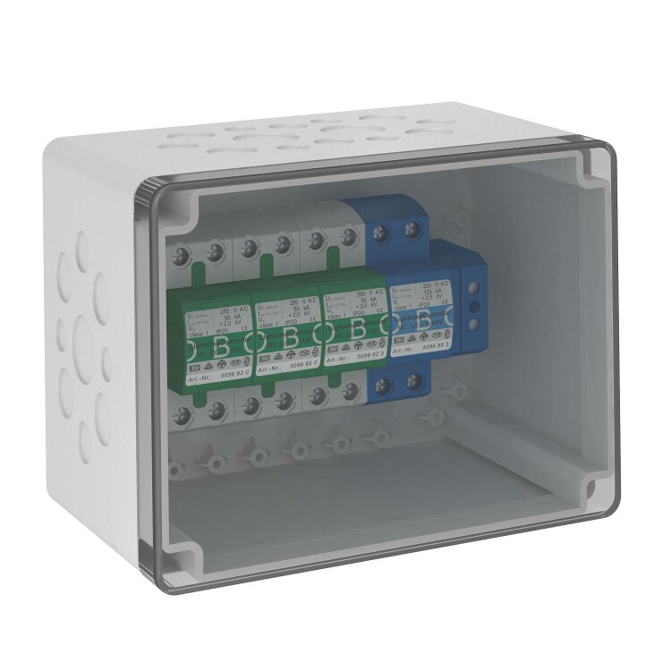 VG: молниеразрядник - системное решение тип 1 (класс B) согласно ГОСТ IEC 61643-11-2013 Устройство молниезащиты MC 50-B/VDE и МС 125 B/NPE устанавливается в изолированном корпусе IP65 с возможностью пломбировки Импульсный ток 100 кА (10/350 µs), проверено BET Соответствует требованиям директивы VDN 2-ой редакции 2004 Уровень защиты Up