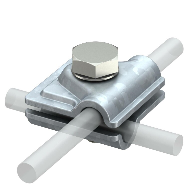 для T-образных, крестообразных и параллельных соединений; быстрый монтаж с помощью болта M10 x 30 из высококачественной нержавеющей стали; отвечает требованиям стандарта VDE 0185-305 (ГОСТ Р МЭК 62305).