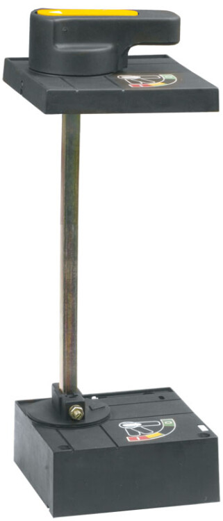 Ручной поворотный привод предназначен для преобразования вращательного движения в поступательное для управления автоматическим выключателем. Привод закрепляется на двери распределительного устройства для оперирования выключателем через дверь или непосредственно на выключателе.
