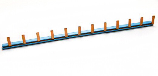 Шина для автоматических выключателей SN201. Максимальный номинальный ток: 60А. Сечение 10 мм2, 1 фаза, 12 контактов