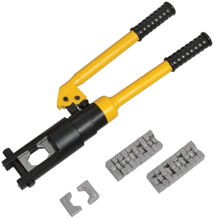 Гидравлические прессы позволяют создавать механические соединения типа кабельная жила-гильза или кабельная жила-наконечник с помощью механической опрессовки. Прессы снабжены сменными матрицами, предназначенными для различных сечений жил. Гидравлические прессы значительно облегчают процесс опрессовки так как требуют применения меньших усилий, чем механические прессы.