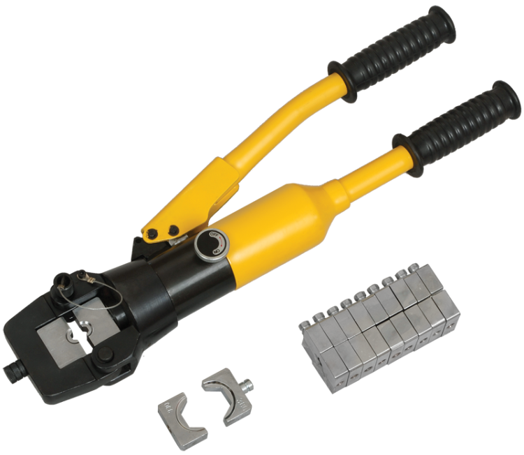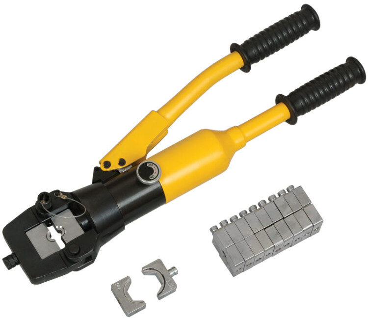 Гидравлические прессы позволяют создавать механические соединения типа кабельная жила-гильза или кабельная жила-наконечник с помощью механической опрессовки. Прессы снабжены сменными матрицами, предназначенными для различных сечений жил. Гидравлические прессы значительно облегчают процесс опрессовки так как требуют применения меньших усилий, чем механические прессы. Наличие клапана автоматического сброса давления (АСД) предохраняет инструмент от перегрузок и увеличивает срок его службы. Принцип действия АСД: когда сила давления рабочей жидкости, действующая на запорную иглу, превышает противодействующее усилие пружины, клапан открывается и перепускает через себя часть потока гидравлической жидкости, не позволяя давлению достигнуть разрушающего уровня.