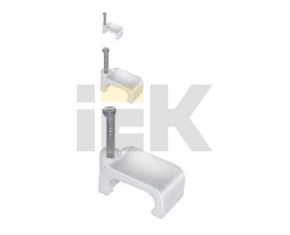 Скоба с гвоздём предназначена для быстрого и надежного крепления плоских кабелей к дереву, прессованному картону, швам кирпичной кладки, к штукатурке, бетону, кирпичу. Изготовлены из гибкого негорючего ударопрочного полипропилена, гвоздь - закаленная оцинкованная сталь.