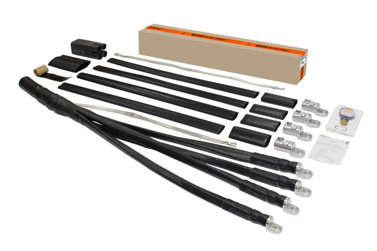 Применение:Для кабелей: ВБбШв, ПвБбШв, ПвБбШп, АВБбШв, АПвБбШв, АПвБбШп и их аналогов Материалы:Полиолефин модифицированный потоком быстрых электроновПреимущества:Имеют высокие изоляционные свойстваУстойчивы к ультрафиолетовому излучению и воздействию климатических факторовПрименяются с кабелями, как с медными, так и с алюминиевыми жиламиИспользуются при монтаже муфт как внутренней, так и наружной установкиТермоплавкий клей, нанесенный на внутреннюю поверхность перчатки и трубок, обеспечивает полную герметичность муфты после монтажаВ комплекте кабельные наконечники с контактными болтамиСовместимы с кабелями с нулевой жилой пониженного сеченияУзел непаяного заземления обеспечивают надежный контакт и упрощает монтаж муфтыВозможно применение с экранированными кабелями Назначение:Для оконцевания 4 или 5-ти жильных бронированных кабелей с пластмассовой изоляцией (ПВХ, СПЭ) на напряжение до 1 кВ Конструкция:Термоусаживаемая перчаткаТермоусаживаемые трубки по количеству жил кабеляТермоусаживаемые трубки на наконечники по количеству жил кабеляБолтовые наконечникиНепаяный узел заземления