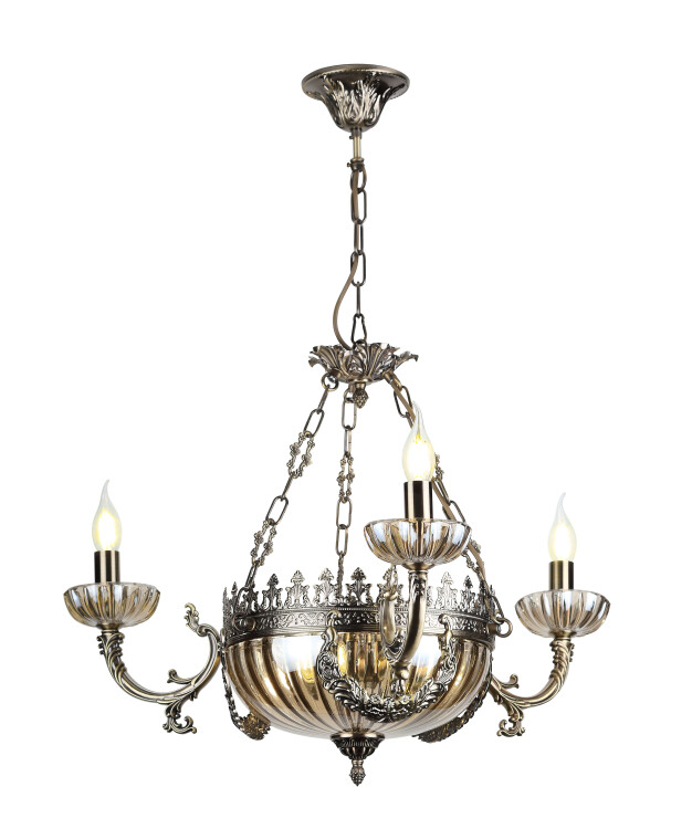 Арматура люстры Patricia окрашена в цвет античной бронзы. Гальваническое покрытие металла устойчиво к прямым солнечным лучам, на нем не возникнут царапины и сколы.