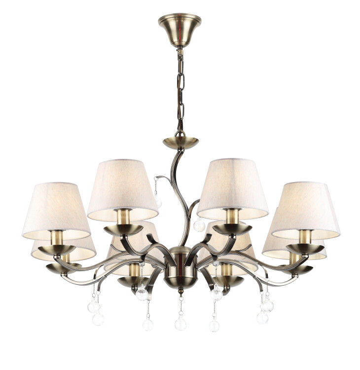 "Aroma" в переводе с итальянского "аромат". Вы ещё не вошли в сад, но уже чувствуете, как благоухают его цветы. Началось лето, установилось тепло и сотни бутонов потянулись к солнцу, раскрывая свои лепестки. Только взгляни на люстры и бра коллекции Rivoli Aroma. Бронзовые стебли держат белые плафоны, ткань которых лёгкая и светлая, как дуновение летнего ветерка. Если приглядеться, можно увидеть даже капли росы, не успевшие высохнуть с утра. Коллекция укомплектована 8-ми рожковой люстрой.