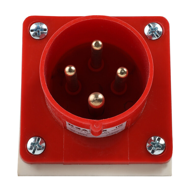 Силовая вилка 4 полюсная на номинальный ток 16 А и рабочее напряжение переменного тока 380 В.