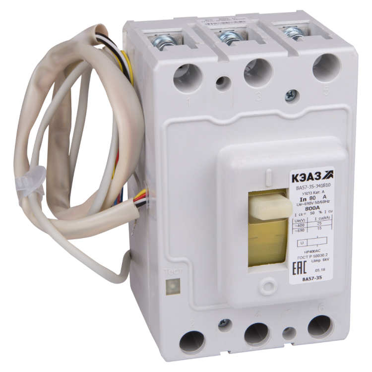 Блочный автоматическ ий 3 полюсный выключатель переменного тока с предельной коммутационной способностью при переменном токе 6 кА на номинальный ток 20 А .