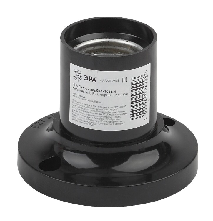 карболитовый патрон потолочный; способен выдерживать высокие температуры (до 300 градусов), обладает высокими электроизоляционными и антикоррозийными свойствами, не подвержен воздействию агрессивных сред; удобное подключение провода к контактной группе с помощью зажимных винтов