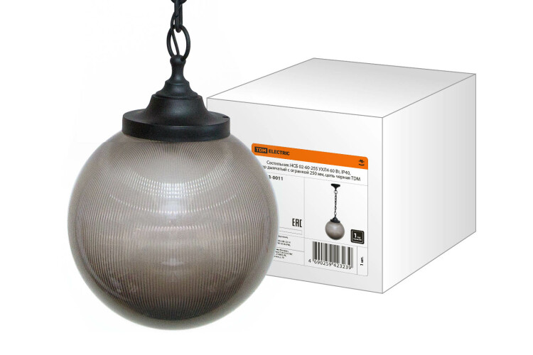 Светильник НСБ 02-60-255 УХЛ4 60 Вт, IP40, шар дымчатый с огранкой 250 мм, цепь черная TDM (кр.1шт) !Акция