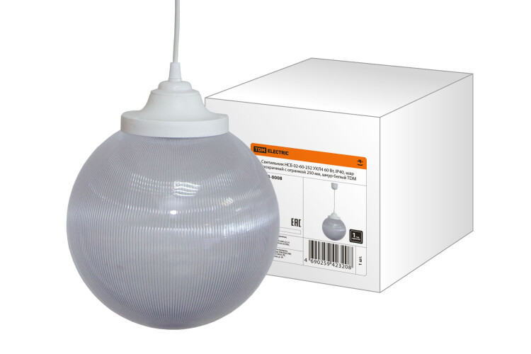 Светильник НСБ 02-60-252 УХЛ4 60 Вт, IP40, шар прозрачный с огранкой 250 мм, шнур белый TDM (кр.1шт) !Акция