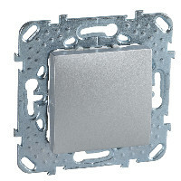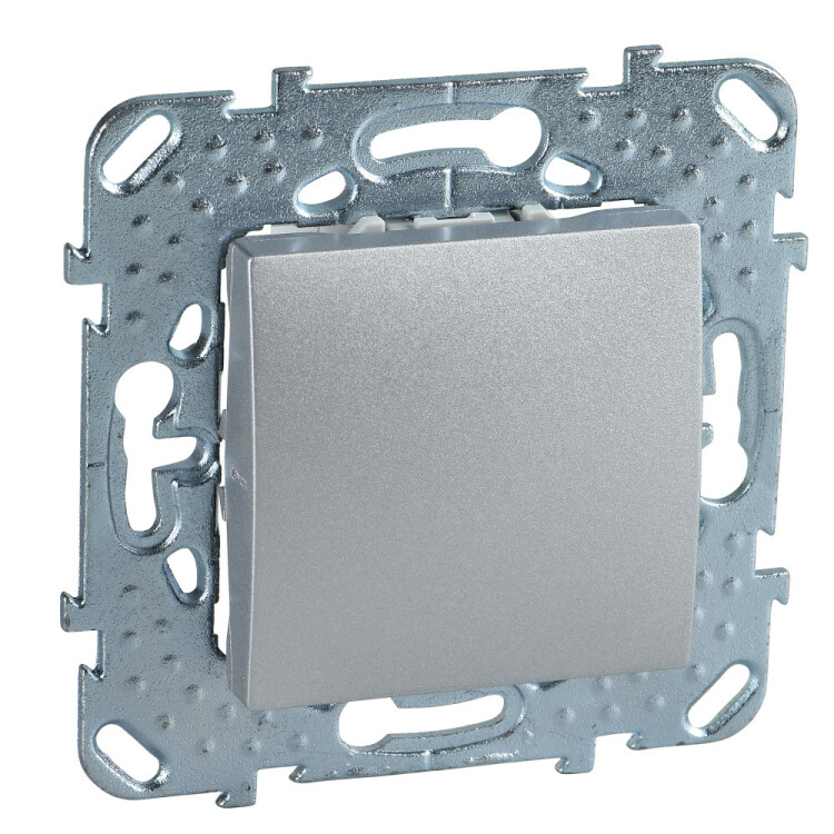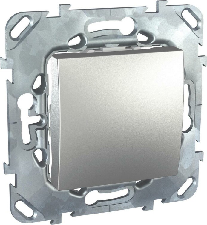 Переключатель одноклавишный Schneider Electric UNICA TOP (алюминий) без подсветки предназначен для сетей до 250 В на ток до 10 А.
