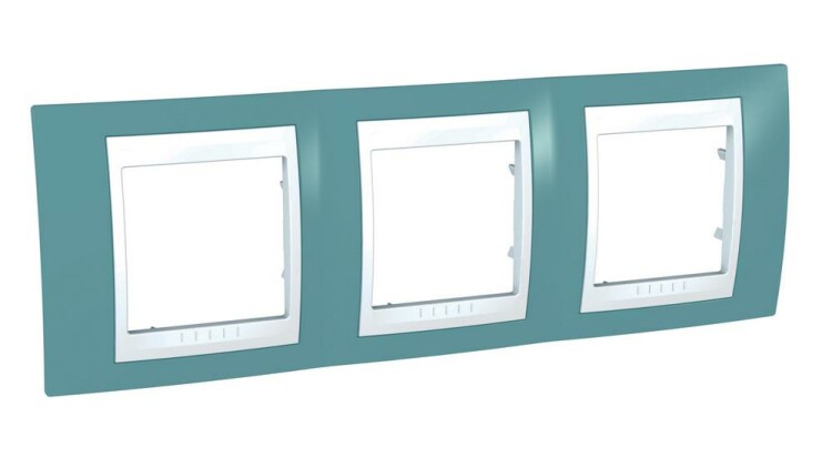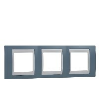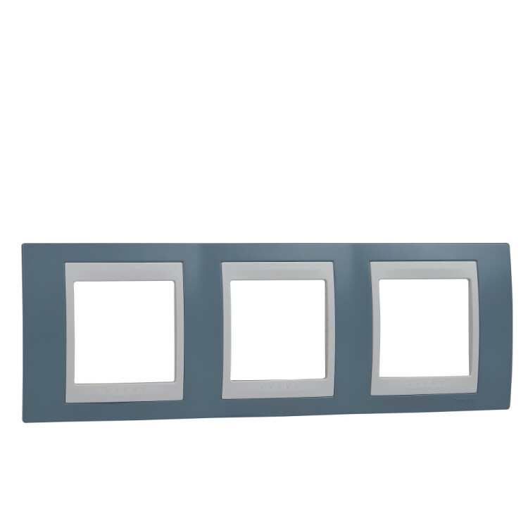Рамка Schneider Electric UNICA ХАМЕЛЕОН (синий) трёхместная с белой декоративной вставкой.
