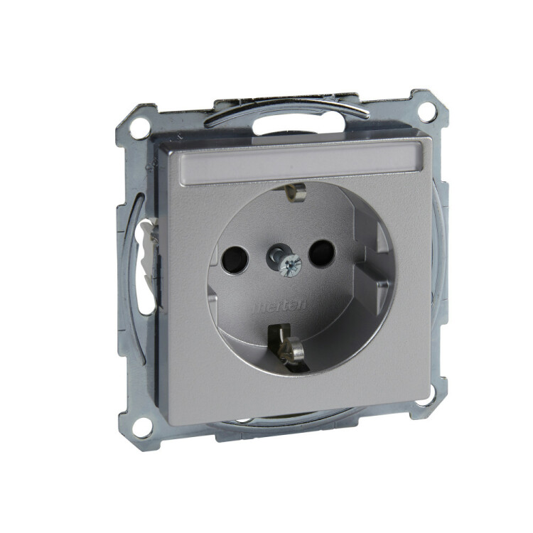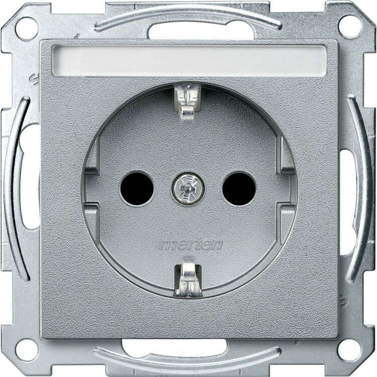 Механизм розетки SCHUKO с полем для надписи, алюминий. наименование: M-Star, M-Arc, System M, M-Plan, M-Elegance, M-Plan glass, M-Smart - тип устройства или его аксессуаров: розетка питания - стандарт розетки: немецкий - дополнительная информация о розетке: с поверхностью маркировочной таблички, С защитными шторками. Преимущества: Безграничные возможности Merten System M. Основой изделий являются высококачественные механизмы скрытого монтажа. Они отличаются высокой гибкостью использования и разнообразием выполняемых функций: это электрические розетки, клавишные и кнопочные выключатели, устройства управления рольставнями и регуляторы температуры, а также телефонные, ТВ/аудио и компьютерные розетки, датчики движения и присутствия, термостаты, светорегуляторы и реле времени, компоненты радиосистемы и системы автоматизации KNX. Merten System M удовлетворяет всем требованиям и успешно решает любые задачи.... применения: Изделия Merten System M подходят для жилых и нежилых помещений. Их устанавливают в школах, офисах, больницах или отелях., Инновационные функции для классических электрических установок, Выполнение функций интеллектуального интерфейса для работы с KNX, Обеспечение комфорта, безопасности и эффективности использования электроэнергии, Возможность простой и гибкой модернизации с System M и системой RF..