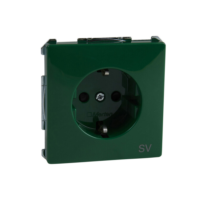 Розетка Shneider Electric Merten SD SCHUKO (рубиновый) для специальных электрических цепей без з/k со шторками подходит для сетей 250 В и тока 16 А.
