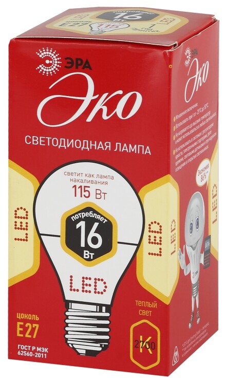 Бытовая светодиодная лампа ЭРА Серии Бюджет, создаёт яркое ровное освещение и экономит до 90% электроэнергии по сравнению с лампой накаливания с аналогичным световым потоком. Светит теплым светом с жёлтым оттенком - такая цветовая температура эффективна для отдыха и уютной атмосферы в доме. Используется в потолочных, настенных, настольных светильниках, в люстрах и бра. Мгновенно включается и не нагревается.