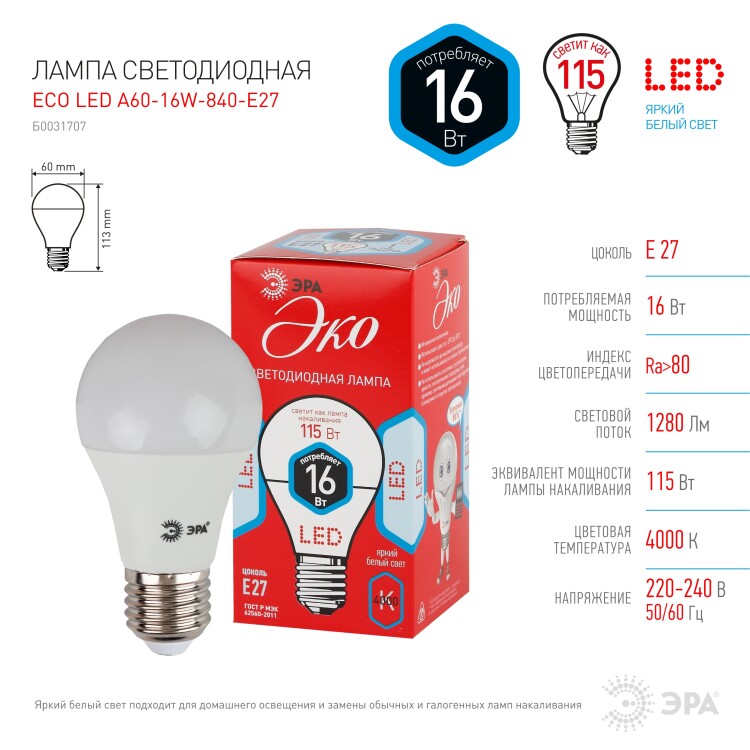 Светодиодная лампа ЭКОНОМ-серии. Линейка этих ламп достаточна для обычного потребителя. Работа в цепи с выключателем с подсветкой не рекомендована.
