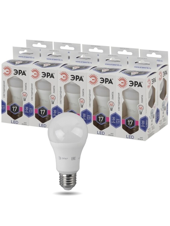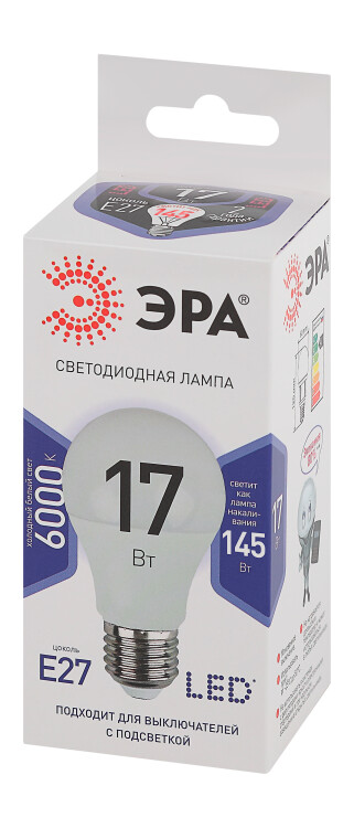 Лампочка светодиодная ЭРА STD LED A60-17W-860-E27 E27 / Е27 17Вт груша холодный дневной свет (кр. 1шт)