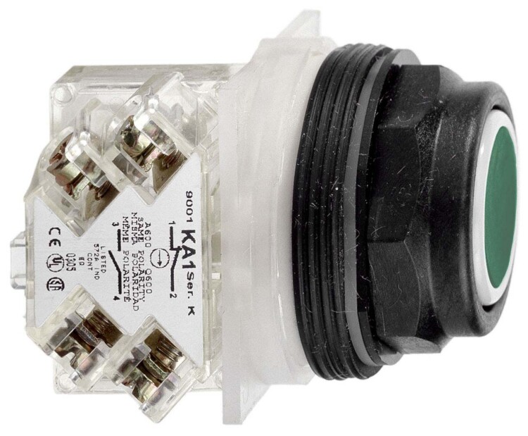 КНОПКА 30ММ 9001SKR1GH5. серия продукта: Harmony 9001SK - тип устройства или его аксессуаров: кнопка - краткое название устройства: 9001SK - доп. информация для толкателя: полная окантовка из пластика. Преимущества: .. применения: ..