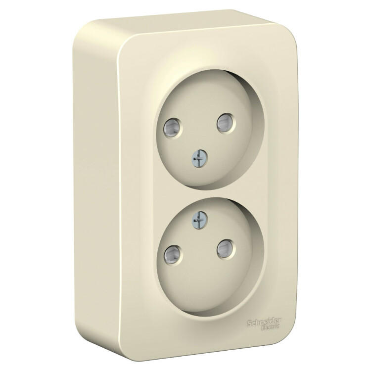 Розетка Schneider Electric BLANCA (молочный, открытой установки) двухместная, без заземления, со шторками предназначена для сетей до 250В, на ток до 16А. Двухместная розетка позволяет подключить два устройства в одном месте. Шторки обеспечат дополнительную безопасность в помещении, где находятся дети.