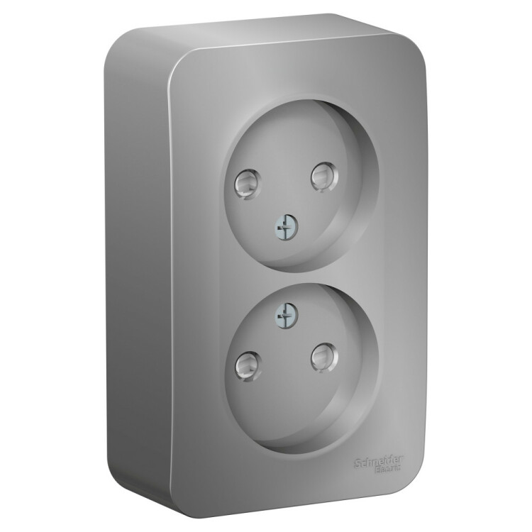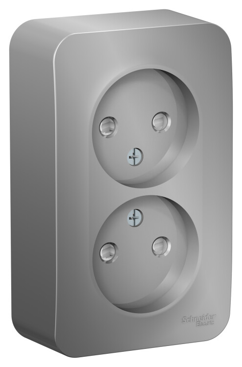 Розетка Schneider Electric BLANCA (алюминий, открытой установки) двухместная без заземления, со шторками предназначена для сетей до 250В, на ток до 16А. Двухместная розетка позволяет подключить два устройства в одном месте. Шторки обеспечат дополнительную безопасность в помещении, где находятся дети.