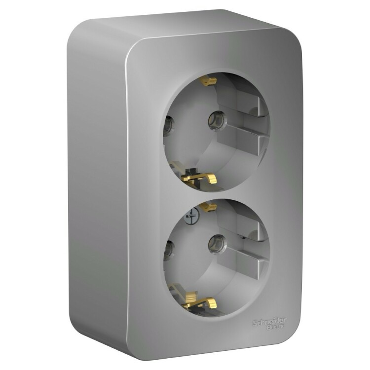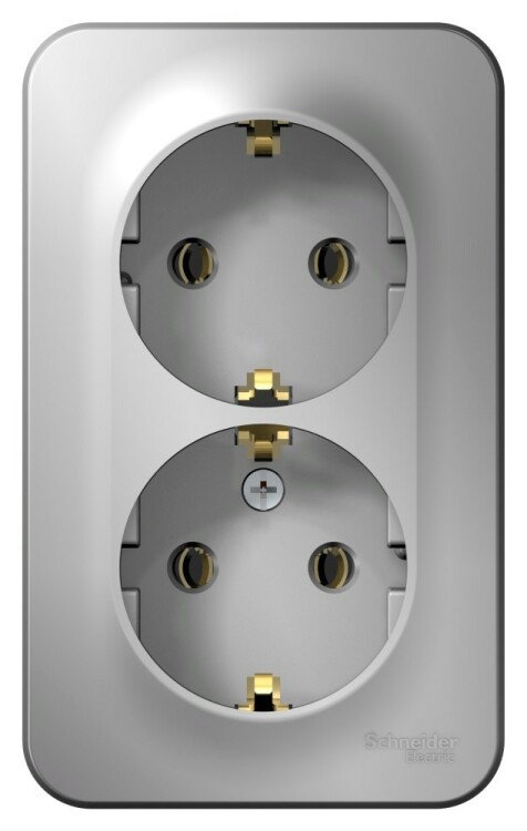Розетка Systeme Electric (ранее Schneider Electric) BLANCA (алюминий, открытой установки) двухместная, с заземлением, без шторок предназначена для сетей до 250В, на ток до 16А. Двухместная розетка позволяет подключить два устройства в одном месте. Заземление обеспечивает безопасность при косвенном прикосновении. Она изготовлена из ABS-пластика, проста в установке и удобна в применении.