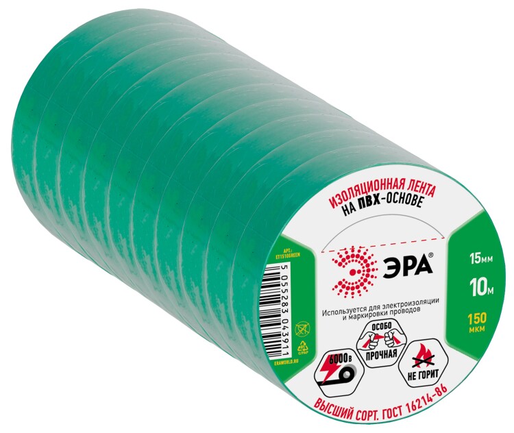 ЭРА ПВХ-изолента 15мм*10м зеленая (10/500/14000) (кр. 1шт)