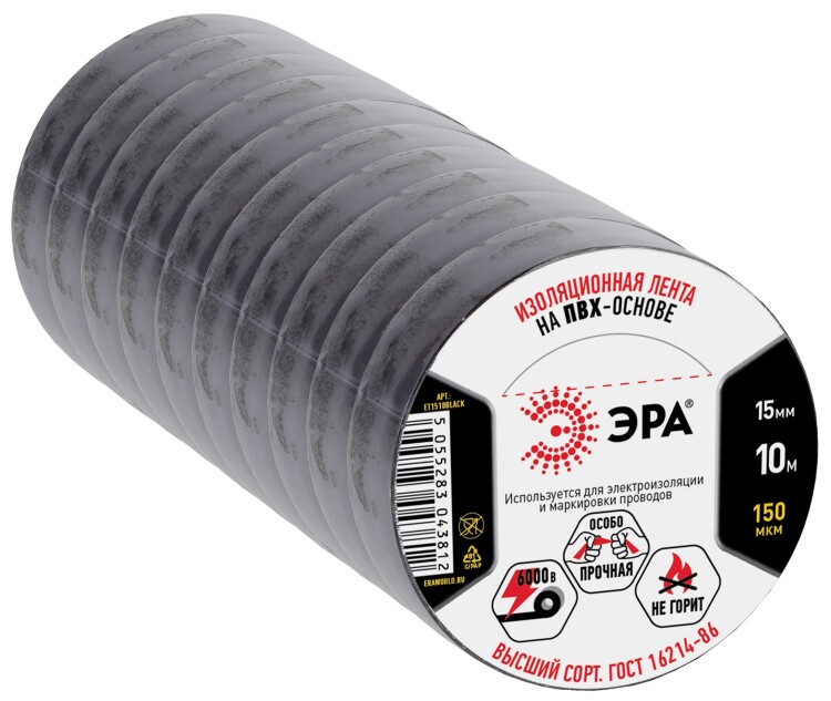 ЭРА ПВХ-изолента 15мм*10м черная (10/500/12000) (кр. 1шт)