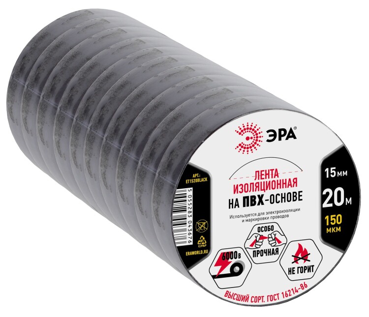 ЭРА ПВХ-изолента 15мм*20м черная (10/200/8000) (кр. 1шт)
