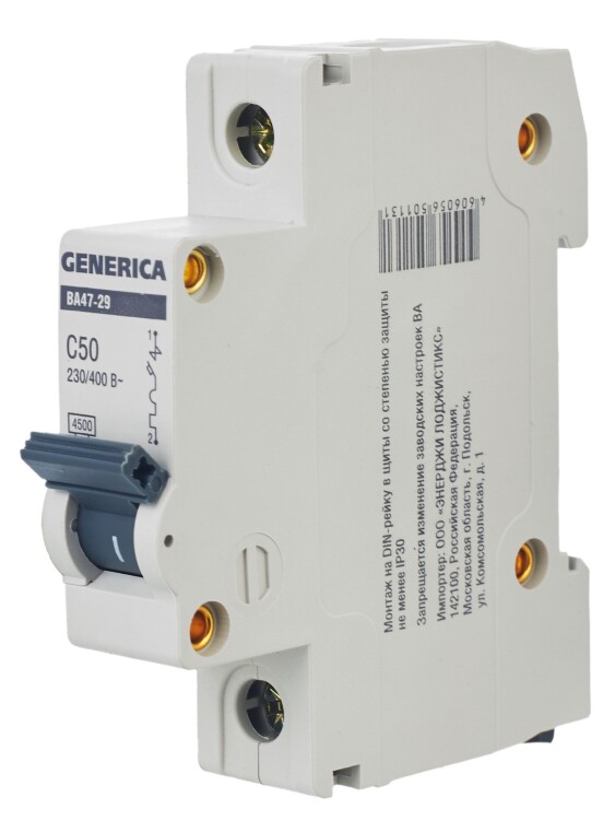 Автоматические выключатели ВА47-29 GENERICA предназначены для защиты распределительных и групповых цепей, имеющих различную нагрузку: