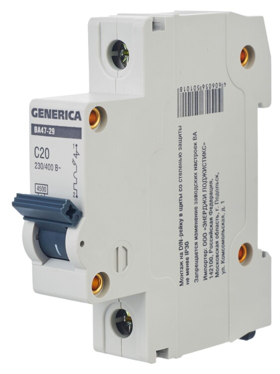 Автоматические выключатели ВА47-29 GENERICA предназначены для защиты распределительных и групповых цепей, имеющих различную нагрузку: