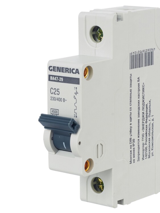Автоматические выключатели ВА47-29 GENERICA предназначены для защиты распределительных и групповых цепей, имеющих различную нагрузку:
