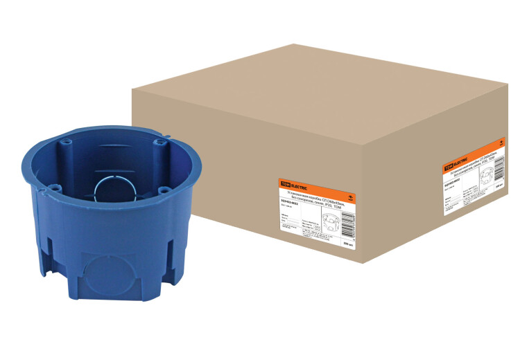 Установочная коробка СП D68х45мм, без саморезов, синяя, IP20, TDM (кр.200шт)