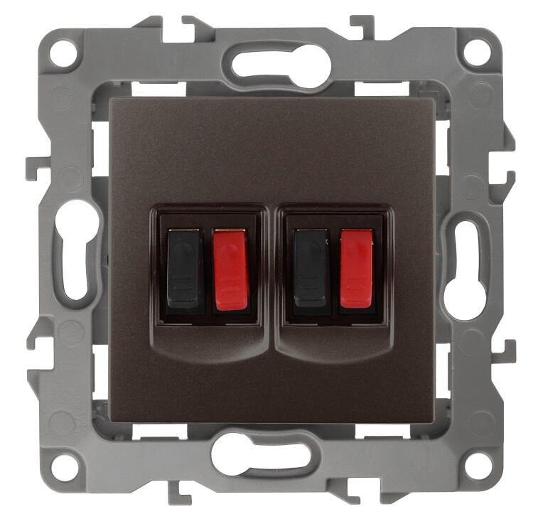 Розетка двойная аудио стерео серии Эра 12 скрытой установки механизм цвет бронза 12-3112-13. Сделана из поликарбоната. Монтаж в подрозетник производится и на лапки, и на винты. Рамки приобретаются отдельно. Рамки Эра 12: 1 пост 12-5001-хх, 2 поста 12-5002-хх, 3 поста 12-5003-хх, 4 поста 12-5004-хх, 5 постов 12-5005-хх. Рамки Эра 12 Сатин: 1 пост 12-5101-хх, 2 поста 12-5102-хх, 3 поста 12-5103-хх, 4 поста 12-5104-хх, 5 постов - 12-5105-хх (хх - код цвета: 01-белый, 02-слоновая кость, 03-алюминий, 04-шампань, 05-антрацит, 06-чёрный, 07-ольха(белёный дуб-сатин), 08-вишня, 09-дуб, 10-венге, 11-сосна, 21-жёлтый, 22-оранжевый, 23-красный, 24-охра, 25-бордо, 26-лайм, 27-зелёный, 28-голубой, 29-синий).